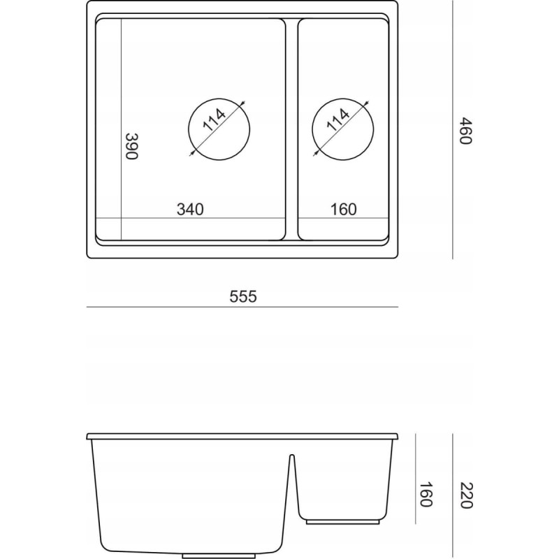 Graniteq Zlewozmywak GraniteQ QUADRON | LOGAN 150 | granitowy zlewozmywak kuchenny SZARY + MIEDŹ PVD | wymiary: 56 x 46 x 22 cm | 1,5-komorowy wpuszczany | podbudowa szafki od: 60 cm