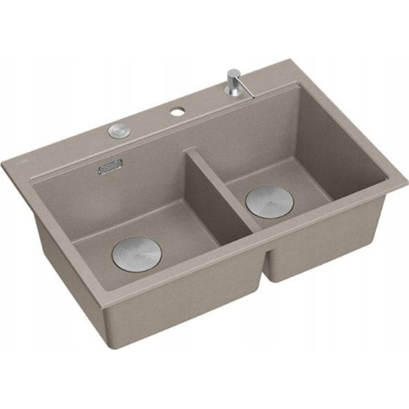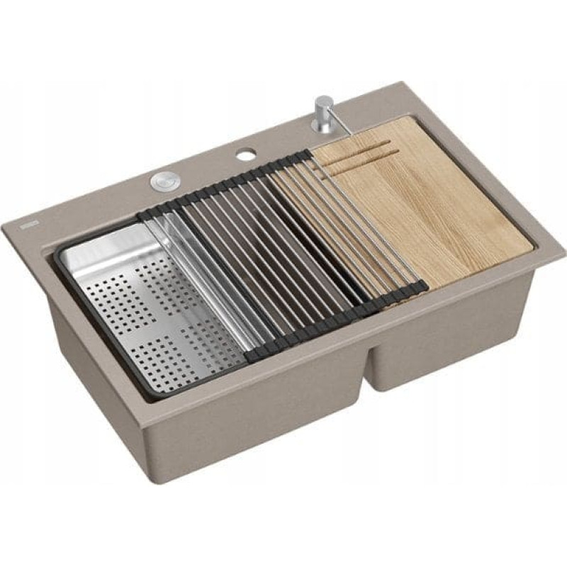 Graniteq Zlewozmywak GraniteQ MARC 120 WORKSTATION GraniteQ zlewozmywak 2-komorowy 760*500*235 mm soft taupe + syfon push to open + dozownik stal szcz.+ wkładka ociekowa+ Qmata +de